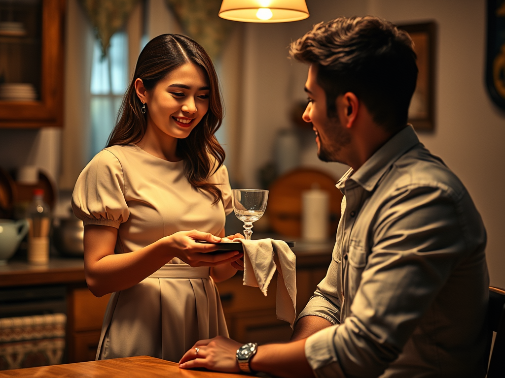 Modern Gorean lifestyle couples often incorporate a version of the wine-serving ritual in their own homes – not as forced theater, but as a mutually cherished routine. For instance, a wife or girlfriend (who consensually identifies as a kajira to her partner) might each evening kneel and serve her companion a glass of wine or tea in a special way. She may have her own elegant style of presenting it – perhaps using a specific graceful pose they both enjoy – and he, in turn, might have a ritual of acknowledging her (maybe taking the drink and then kissing her forehead or saying, “You serve beautifully, my love”).