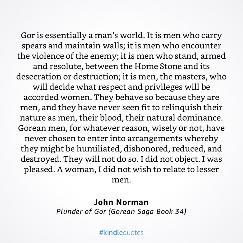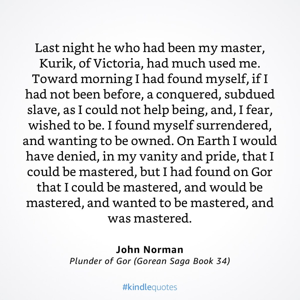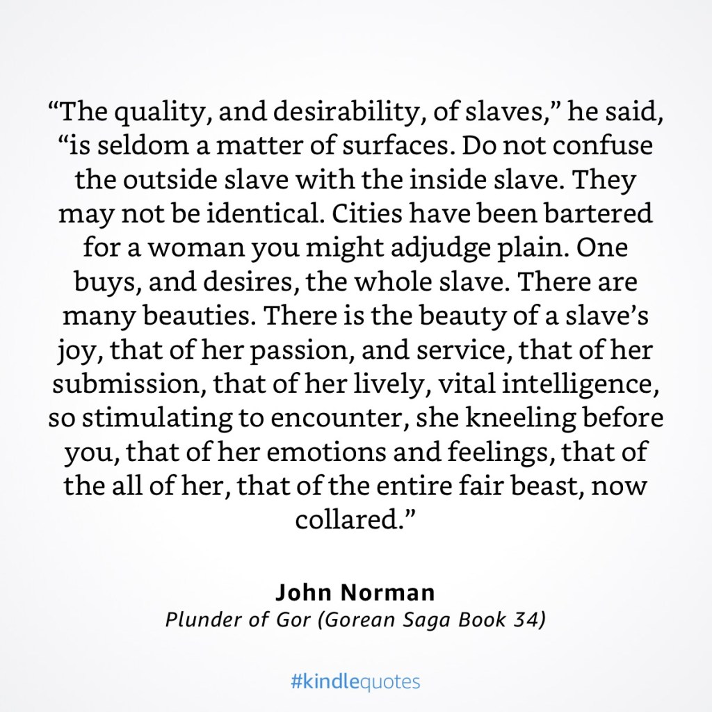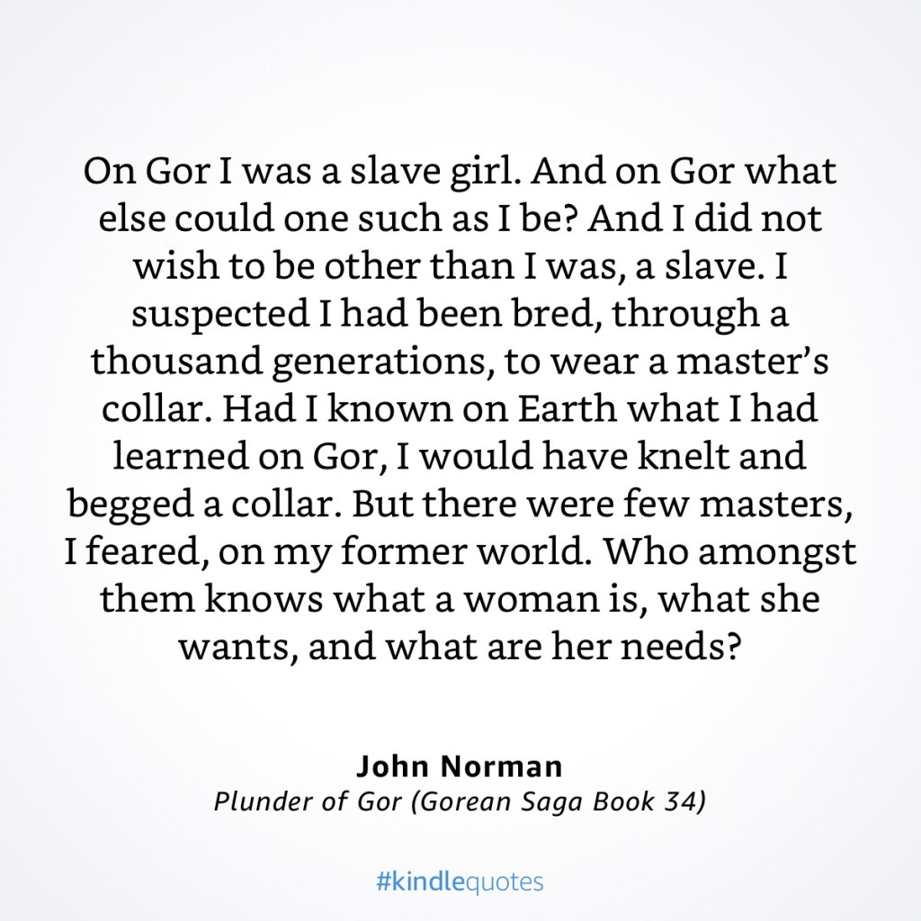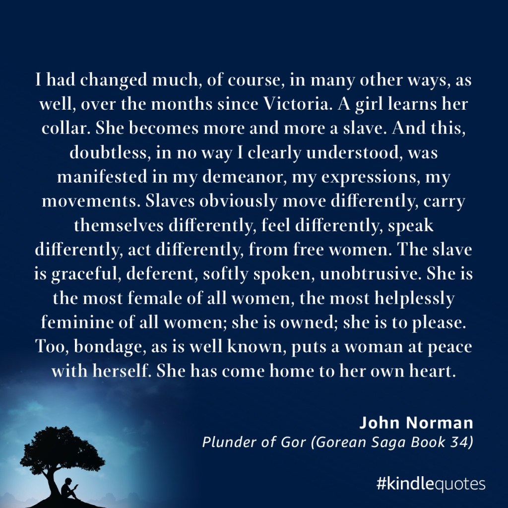 Here goes another quote from the books themselves, considering they are without any doubt the best way to get to know the Gorean Philosophy and Lifestyle.